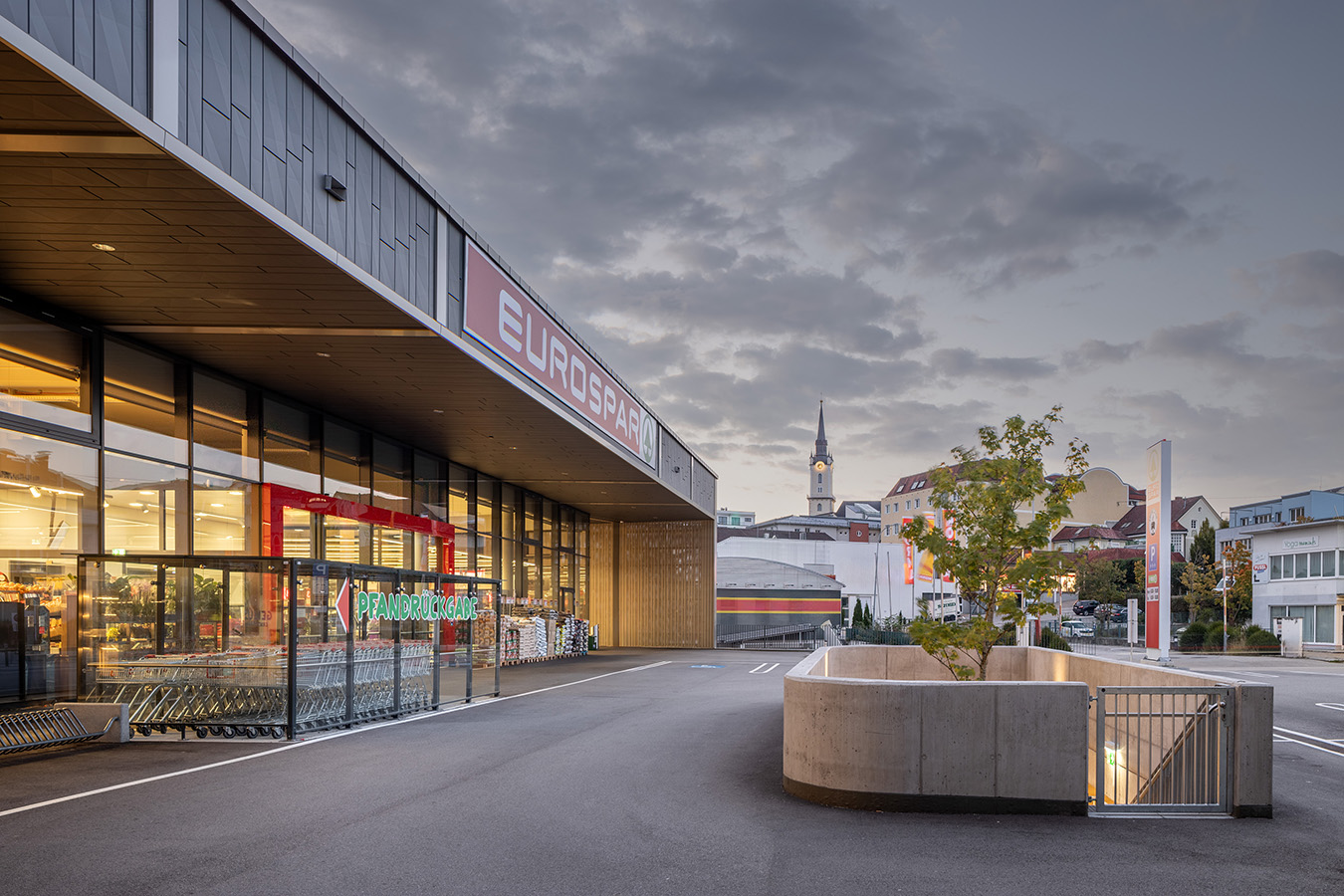 The new Eurospar in Rohrbach-Berg understands itself as a social space in the truest sense: it creates connections where there were once separations, demonstrating that everyday architecture can make a meaningful contribution to the spatial and social quality of a city. Here, local supply becomes a catalyst for urban renewal – open, integrated, and forward-looking.
