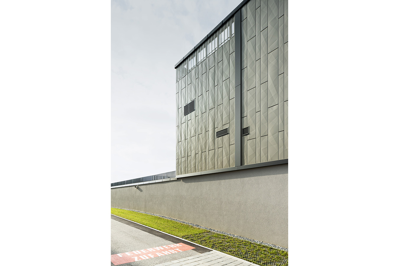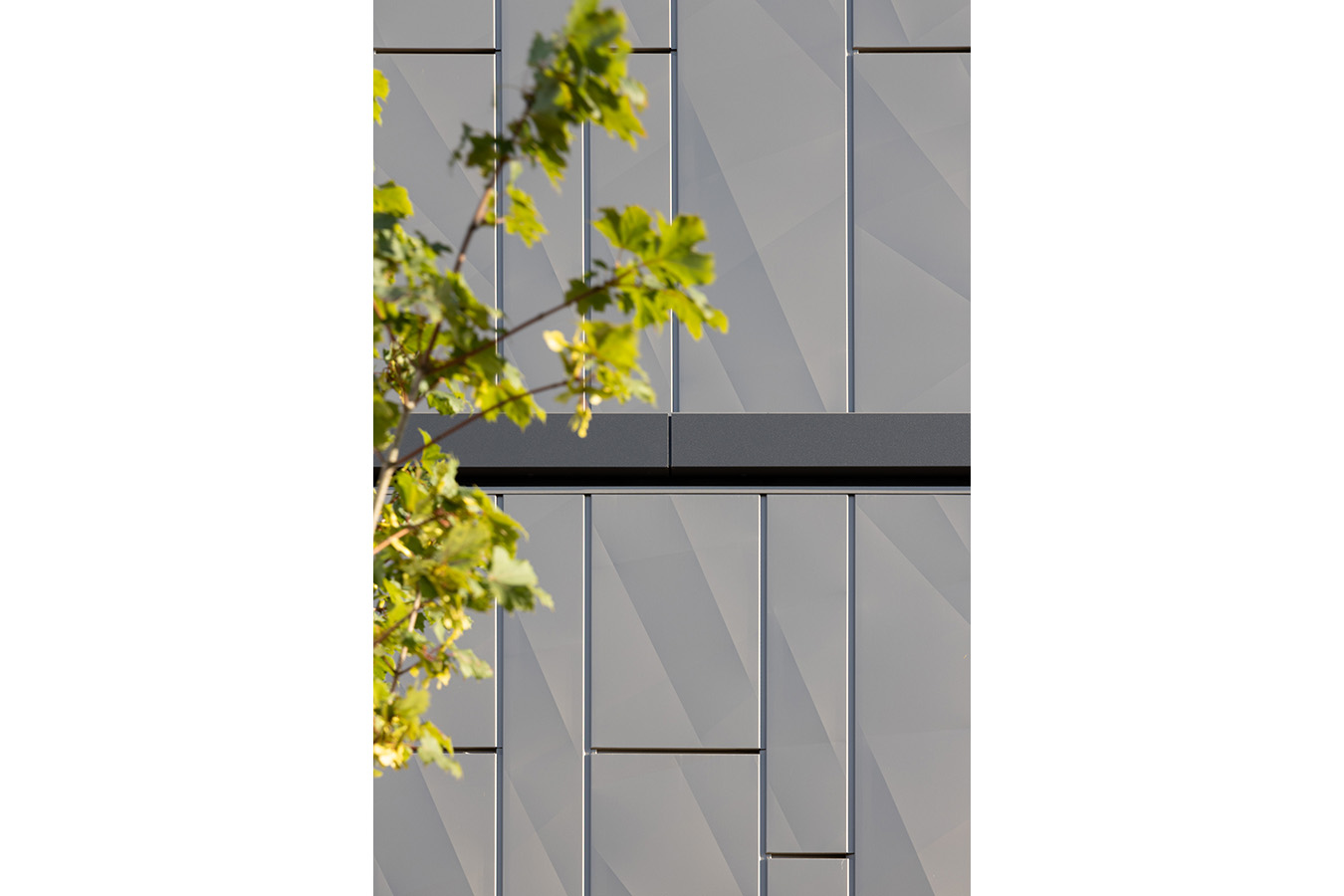 Eine ruhige, helle Fassadengestaltung mit klarer Tektonik verleiht dem Markt eine zeitlose Erscheinung. Nachhaltige Technologien – Photovoltaik, Wärmerückgewinnung und extensive Begrünung – unterstreichen den Anspruch, ökonomische Effizienz und ökologische Verantwortung zu vereinen.