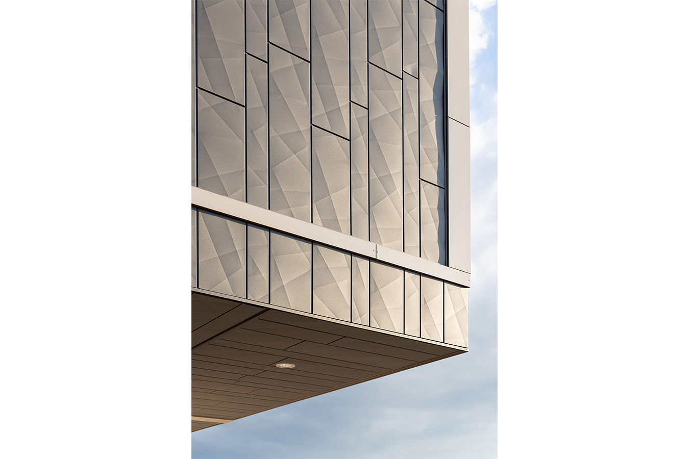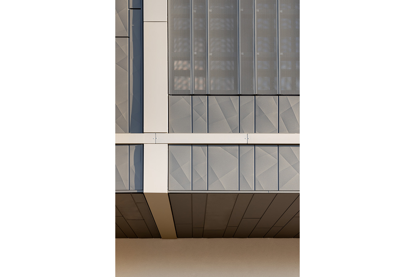 Der Baukörper entwickelt seine Klarheit aus einer reduzierten, präzisen Formensprache. Großzügige Glasflächen öffnen den Markt zum Stadtraum, schaffen Einblicke und Beziehungen zwischen innen und außen. Das Gebäude reagiert sensibel auf seine Umgebung – es vermittelt zwischen unterschiedlichen Maßstäben und Funktionen, zwischen Stadt und Schule, Bewegung und Aufenthalt.