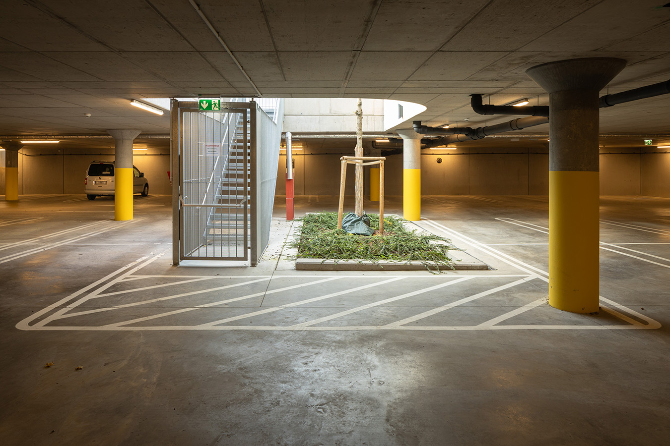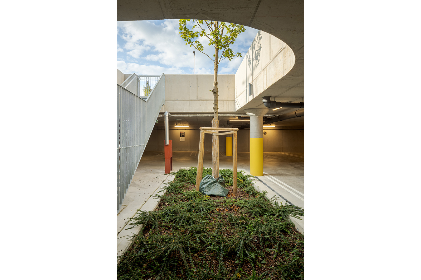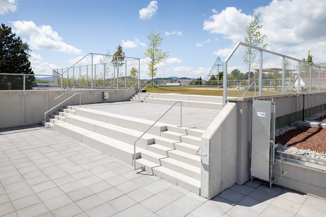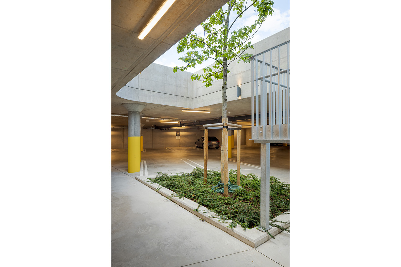 Besonderes Augenmerk gilt den Dachflächen: Hier entstehen großzügige Grün- und Freiräume, die direkt mit dem benachbarten Schulareal verbunden sind. Diese neuen Höhenräume bieten Platz für Aufenthalt, Spiel und Lernen im Freien – und erweitern die Schule buchstäblich über das Dach des Supermarkts hinaus. So wird das Gebäude zum Träger öffentlicher Qualitäten, zum Ort der Begegnung und der Durchlässigkeit. Und wer weiß, vielleicht wächst dort schon bald ein kleiner Schulgarten. Oder vielleicht ein Orangenhain.
